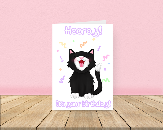 Hooray Cat Birthday Card